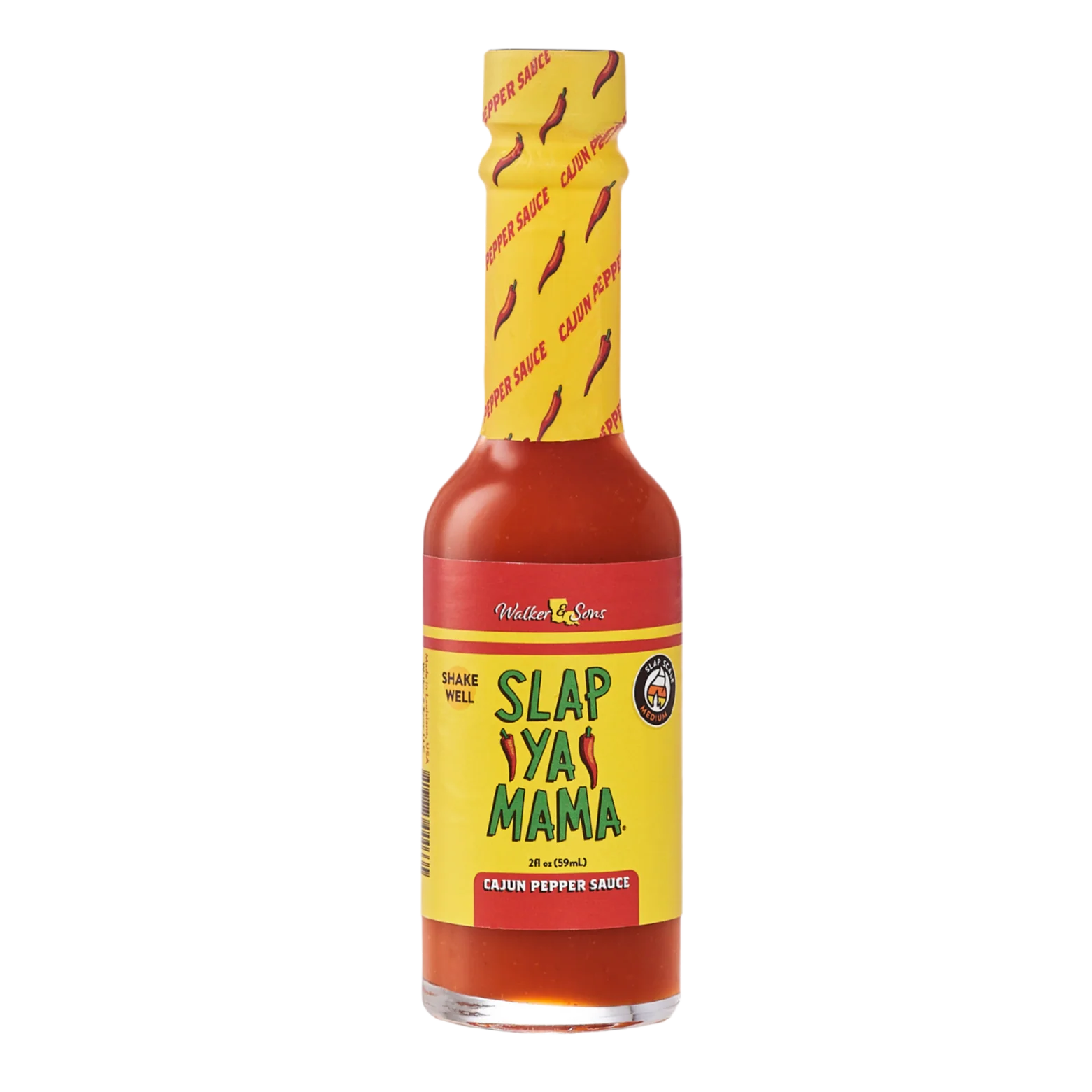 Experience the sensation of explosive Cajun heat and flavor with Slap Ya Mama's Hot Sauce. In a 5oz bottle, you can rest assured that all of your favorite dishes will be equipped with the special blend of Cajun spices that will make your taste buds explode with those Louisiana flavors. Here at Slap Ya Mama, we really like to use it as a topping for our pizza. We also like to drown our eggs in the morning with it.